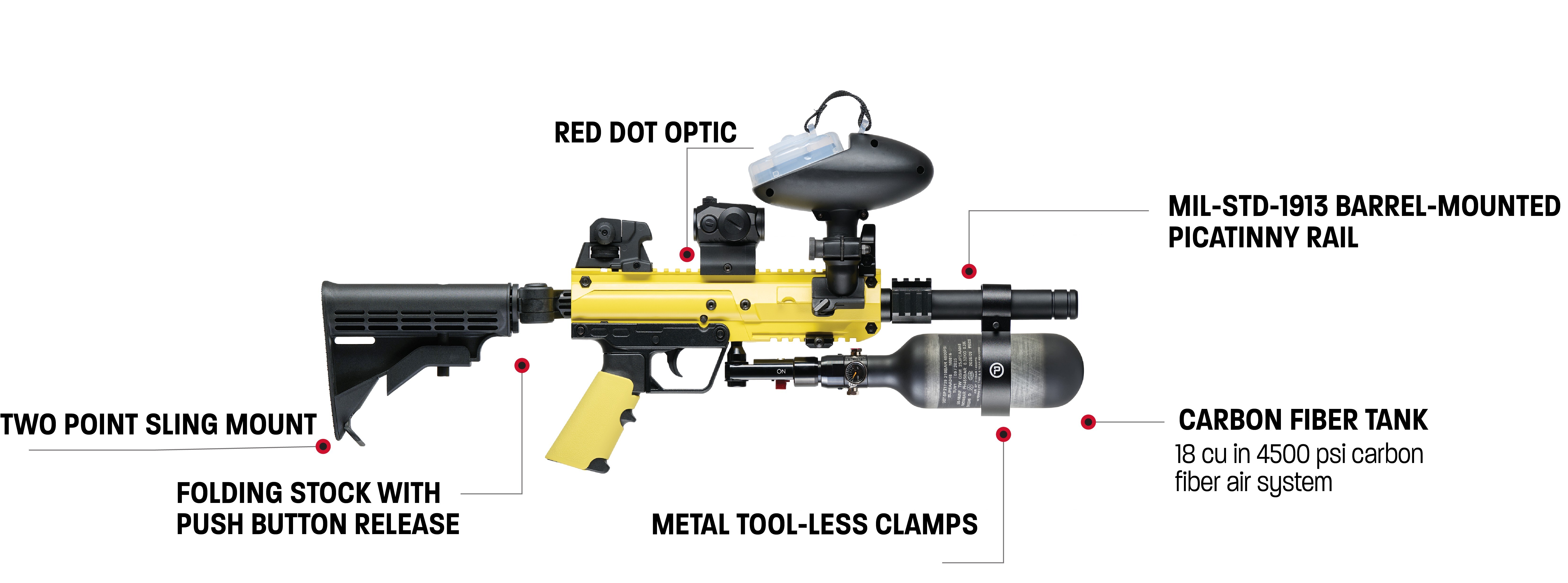 At the core is a semi-automatic 0.68 caliber design tuned for patrol deployment, delivering consistent performance across shifts using HPA power. TAC-PATROL balances capability with carry: a carbon fiber 18 cu in tank helps keep the platform light and manageable, while an upgraded push-button folding stock locks in for stability and folds flat for tight spaces and quick movement. Durable, metal toolless tank clamps keep the system tight under hard use, supporting confident, sustained operation when patrol tempo changes fast.