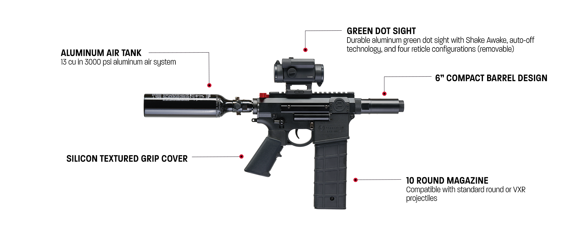 The PepperBall VKS Phantom is the compact, fast-handling launcher tactical teams have been asking for: small, light, and easy to handle in any tactical operation. From door pop to first deployment, VKS Phantom handles like a machine-pistol, and comes up on target fast, giving teams a practical non-lethal option when seconds matter.